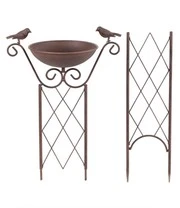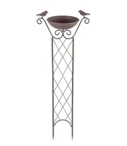 Verfraai uw omgeving met het betoverende vogelbad met klimhulp en bied vogels een plek om te drinken en te spetteren. Het vogelbad is gemaakt van metaal en wordt eenvoudig met de grondpen in de bodem gestoken. Op de decoratieve drinkplaats zitten twee mooie vogels. Dagelijks baden en drinken is erg belangrijk voor wilde vogels, dus het gietijzeren vogelbad zal zeker vaak bezocht worden.